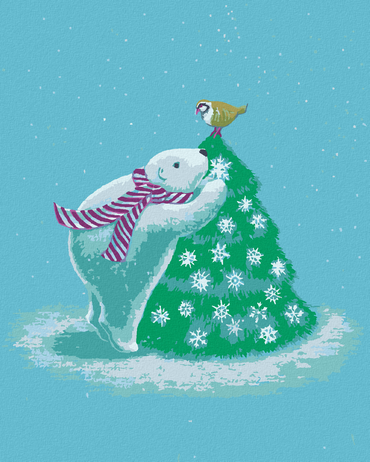 Malování podle čísel - LEDNÍ MEDVÍDEK U STROMU (SUE ELLEN BROWN) - 80x100 cm, vypnuté plátno na rám