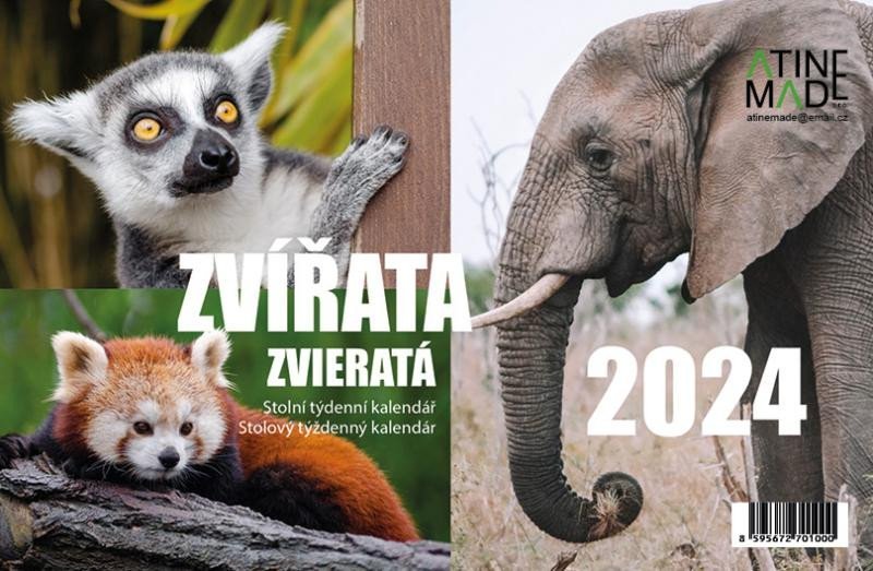 Kalendář 2024 Zvířata, stolní, týdenní, 225 x 150 mm