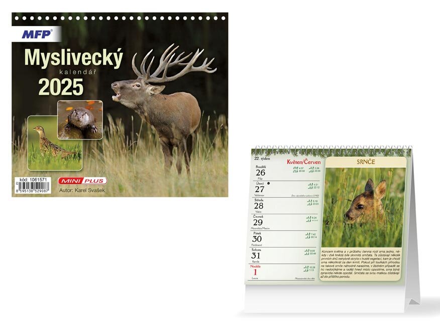 Stolní kalendář na rok 2025 mini s názvem Myslivecký. Vhodný pro zapisování důležitých poznámek, k organizování různých událostí každodenního života. Najdete zde fotky divokých zvířat a povídání o nich. Kalendář je vhodný pro myslivce nebo pro milovníky přírody. Pod každou fotkou je stručná charakteristika daného zvířete. Možnost dotisku firemního loga a textu na spodní stranu kalendáře.