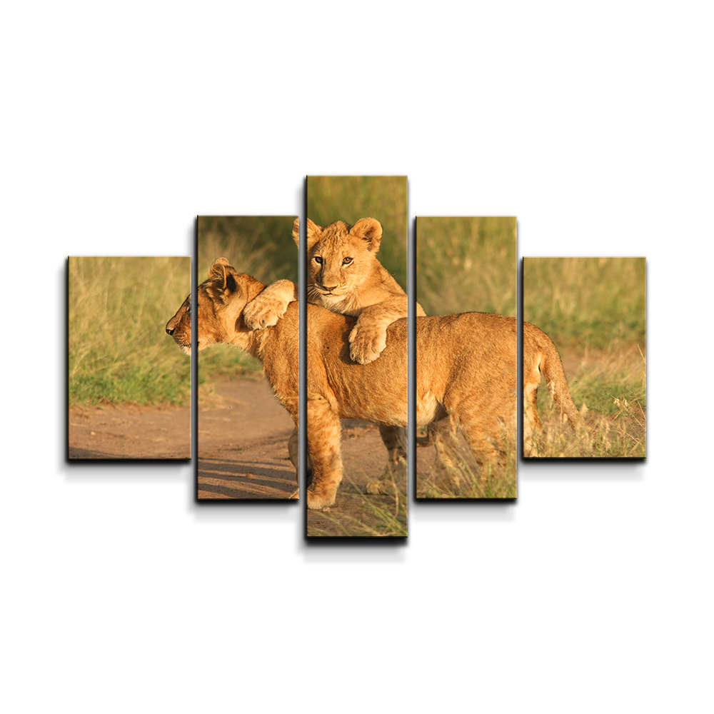 Obraz - 5-dílný Lvíčata: 125x90 cm