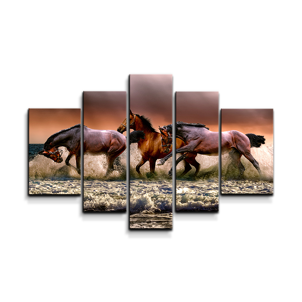 Obraz - 5-dílný Koně ve vodě: 125x90 cm
