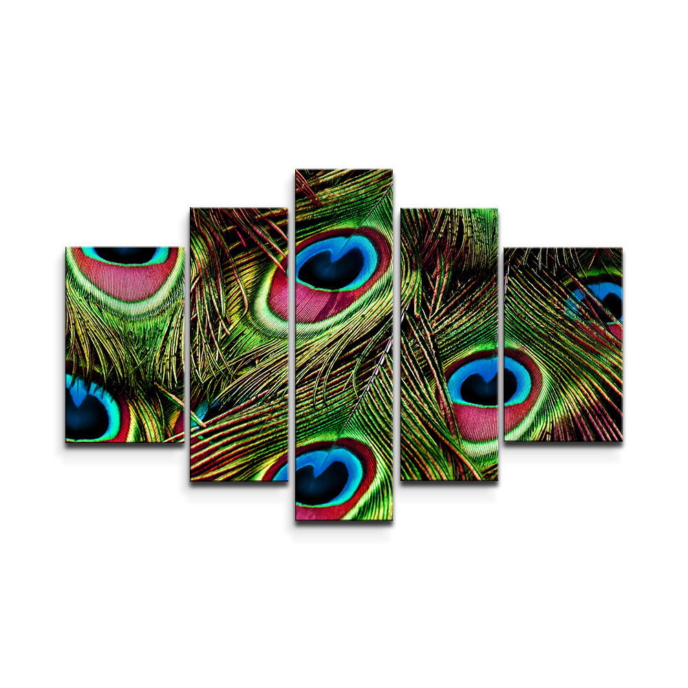 Obraz - 5-dílný Paví peří: 125x90 cm