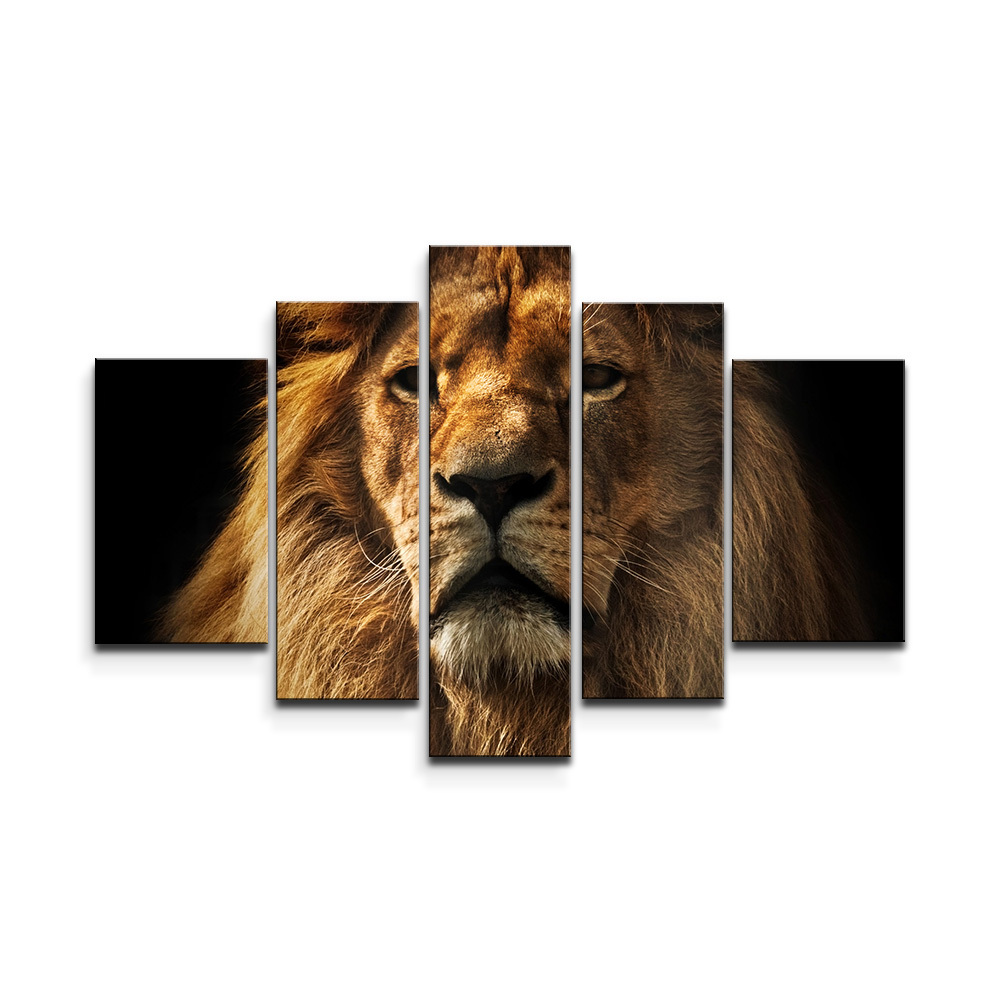Obraz - 5-dílný Lev: 125x90 cm