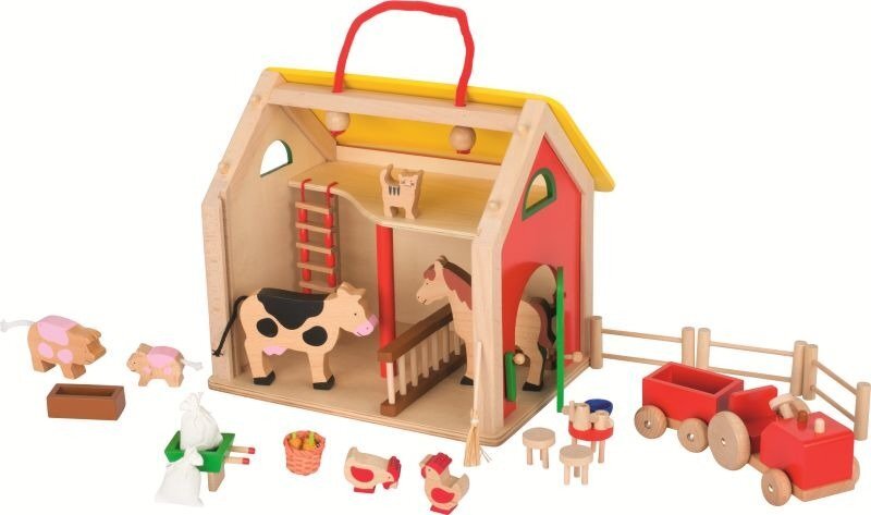 Stajnia posiada zdejmowany dach i wyciąganą ścianę. Wyposażenie to 31 części - traktor, zwierzęta i akcesoria.