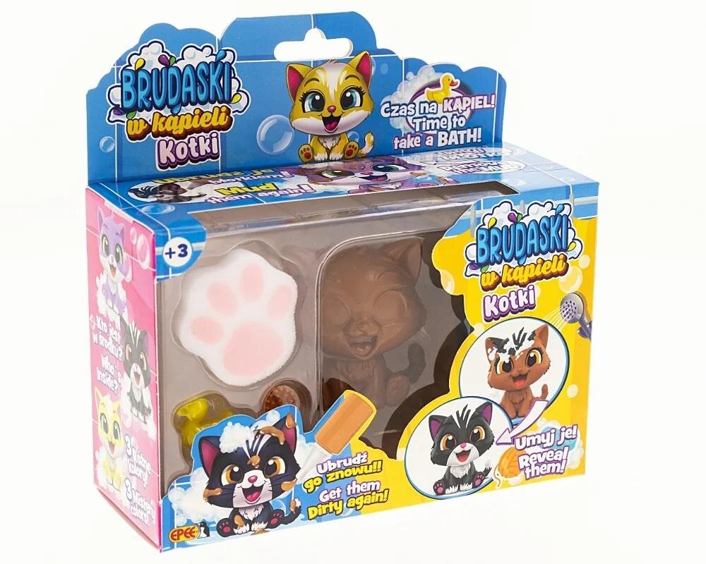 Poznaj kolekcję przesłodkich kotków, które można brudzić błotkiem, myć i zaczynać całą zabawę od nowa! Brudaski w kąpieli kotki to urocze figurki, które zostały stworzone po to, by zapewnić dzieciom mnóstwo radości i niezliczone możliwości kreatywnej zabawy. Dzięki specjalnej powłoce łatwo je wyczyścić, a zabawę ulepszą dołączone do kotków akcesoria.