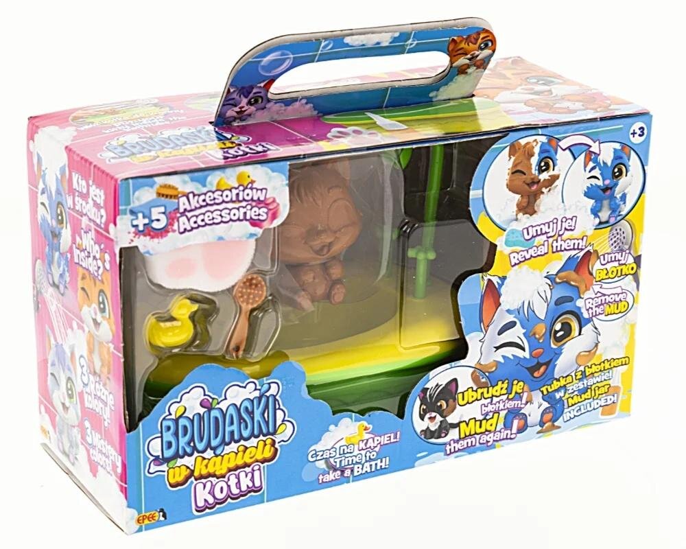 Poznaj kolekcję przesłodkich kotków, które można brudzić błotkiem, myć i zaczynać całą zabawę od nowa! Brudaski w kąpieli kotki to urocze figurki, które zostały stworzone po to, by zapewnić dzieciom mnóstwo radości i niezliczone możliwości kreatywnej zabawy. Dzięki specjalnej powłoce łatwo je wyczyścić, a zabawę ulepszą dołączone do kotków akcesoria.