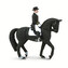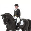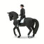 Figurka Holštýnského koně s jezdcem. Holštýnští koně jsou starověké plemeno koní s krevní linií starou více než 700 let. Jsou populární v soutěžní drezuře, a ovažováni za sportovní koně světové třídy.
