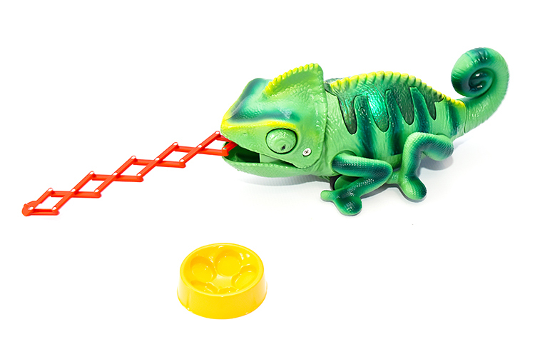Chameleon na dálkové ovládání. Mění barvu, hýbe ocasem a vystrkuje jazyk, na který chytá hmyz. číst celé
