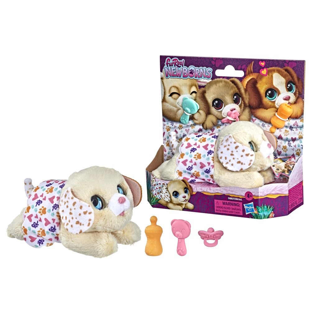 Tito sladcí mazlíčci Vám ožijí přímo v dlani. V té malé krabičce něco chrápe. Co je to? Malé a velmi ospalé novorozené štěňátko nebo kočička, kteří potřebují vaši lásku a péči. Vyndejte je z krabice, pohlaďte je v dlaních a oni se probudí a začnou plakat, protože jsou hladoví. Nakrmte je, zaviňte je a pak jim pomozte znovu usnout! Mláďata se dodávají se 4 doplňky pro péči: lahvičkou na krmení, dudlíkem, kartáčem a zavinovačkou. Sada 2 kusů obsahuje štěňátko a kočičku.
