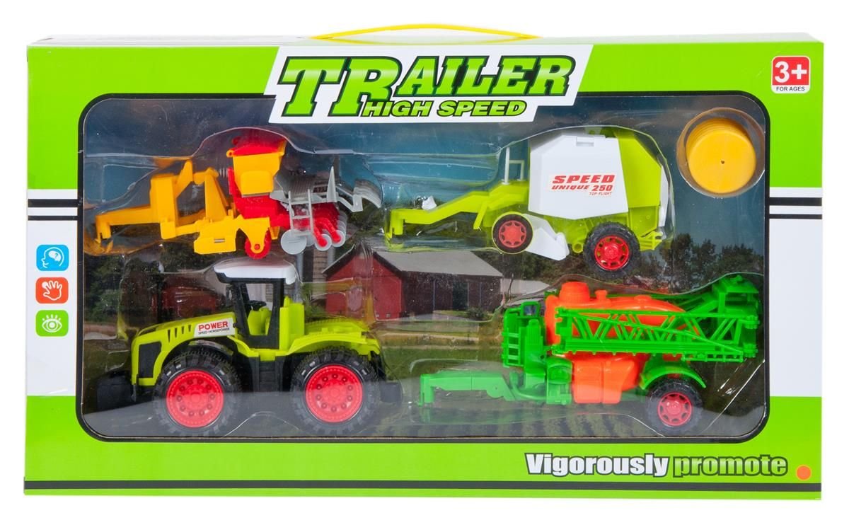 Zalety produktu: pojazd posiada funkcję pull back, dzięki czemu po pchnięciu go do przodu kontynuuję jazdę samodzielnie, przyczepy posiadają ruchome elementy . Rolnictwo jest coraz bardziej popularne. Dzięki Farmie MEGA CREATIVE Twoja pociecha pozna różne czynności występujące na Wsi oraz zaznajomi się z życiem w gospodarstwie rolnym! Zawartość zestawu: Traktor z trzema maszynami rolniczymi: opryskiwaczem, siewnik oraz kombajnem, bela siana. Zabawki wykonane z plastiku. Wymiary/waga/baterie: wymiary produktu (dł. x wys. x gł.)[cm]: traktor- 18x10x10, opryskiwacz- 20x9x45, kombajn-17x8x8, siewnik-17x7x10 wymiar opakowania (dł. x wys. x gł.) [cm]: 45x26x10, waga produktu bez opakowania [kg]: 0,29kg, waga produktu w opakowaniu [kg]: 0,60kg, nie wymaga zasilania bateriami. Zestaw przeznaczony dla dzieci w wieku: 3+.