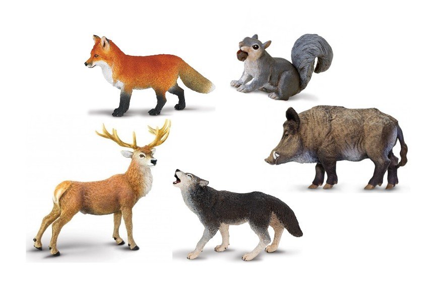 Balíček replik zvířat s názvem V lese od firmy Safari Ltd., v kterém najdete jelena, kance, lišku, vlka a veverku. Jelen lesní (SFS181929): 12 x 10,75 cm. Jelen evropský patří mezi největší (nejmohutnější) zástupce své čeledi. Nejtypičtějším znakem pro samce jsou parohy, které každý rok, obvykle na konci zimy, shazuje. Na jaře, kdy jelenům rostou parohy nové, jsou porostlé jemnou ochrannou sametovou vrstvou.Jelen je výlučně býložravý přežvýkavec. Kanec (SFS224229): 9 x 5 x 3 cm. Kanec, neboli divoké prase je jedním z největších savců. Má dokonce kolem 16 poddruhů! Liška obecná (SFS273729): 8,8 cm x 2,1 cm x 4,9 cm. Liška je nejrozšířenější divoce žijící zástupce šelem. Je velice inteligentní. Vlk šedý (SFS273829): 9,7 cm x 2,9 cm x 7,1 cm. Replika našeho vlka vypadá, že vyje na měsíc, ale snaží se přilákat pozornost své smečky. Veverka popelavá (SFS296129): 7 cm x 2,6 cm x 4,8 cm. Veverka s žaludem, který si vyběhne na strom ukrýt do své skrýše. Safari Ltd. Safari Ltd. je americká firma zaměřená na výrobu ekologických hraček. Na jejím počátku v roce 1982 byla dětská karetní hra na téma ohrožené druhy zvířat. V roce 1986 firma podepsala licenční smlouvu s Carnegie Museum of Natural History. Tato licence umožnila vyrábět autentické modely dinosaurů ve spolupráci s jejich nejlepšími paleontology. S postupným rozrůstáním firmy se začala rozšiřovat i série modelů, které se už neomezovaly jen na dinosaury, ale nabízely pohled na celý svět. Hlavní myšlenkou firmy Safari Ltd. je „učit se hrou“. Navrhuje figurky zvířat tak, aby byly naprosto autentické a svou kvalitou co možná nejvíce odpovídaly skutečnosti. Díky svému ručnímu zpracování je každý výrobek jedinečný. Vzhledem k stále novým vědeckým objevům jsou figurky neustále aktualizovány, mají tak pozitivní vliv na vzdělávání dítěte v oblasti přírody a její ochrany. I proto jsou velmi oblíbenou vzdělávací pomůckou pedagogů celého světa. Touto koncepcí si firma Safari Ltd. vysloužila řadu ocenění za podporu vzdělanosti a význam ochrany životního prostředí a ohrožených druhů. V současné době firma Safari Ltd. nabízí nejen samostatné modely, ale i figurky, které jsou tématicky zařazeny do sad, a to podle oblastí, kde se vyskytují, nebo podle svého živočišného druhu. Můžete se tak detailně seznámit se zvířaty Arktidy, pouště, oceánu a jiných oblastí, nebo zkoumat druhy žab, motýlů, velryb a spousty dalších. Safari Ltd. však neopomíjí ani svět lidí a jeho historii a dílo, a tak můžete poznat nejvýznamnější stavby světa, občanskou válku v Americe, idiány, pravou africkou vesnici, ale dokonce i dopravní prostředky a vesmír. Pro opravdové sběratele jsou k dispozici rozšířené sady! Samostatnou kapitolou výrobků firmy Safari Ltd. jsou produkty z kolekce Safariology. Jedná se o soubor pomůcek do přírody a modely pro pozorování života živočichů a rostlin. Tato kolekce zahrnuje dalokohledy, kompasy, krabičky na brouky, lupy a spoustu dalších nástrojů pro bádání, ale i životní cykly několika druhů zvířat a rostlin, jako je např. mořská želva, kuře, komár, včela, či fazole, ba dokonce i vývoj člověka od svého prapočátku až dodnes. Po tři generace firma Safari Ltd. pokračuje kupředu s jasnou vizí. Rok co rok vytváří stále nové hračky, které vzdělávají a ukazují našim dětem kouzla života na této planetě.