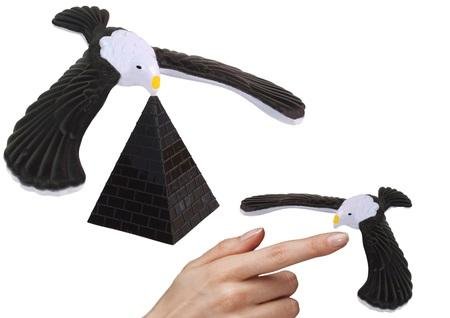Antygrawitacyjny Ptak Balansujący Czarny Zabawka Balansujący model ptaka to zabawka dla dzieci oraz ozdoba biurka lub półki w Twoim pokoju. Balansujący model orła to mała edukacyjna zabawka ucząca zasad fizyki. Wzbudzi zainteresowanie dziecka nauką oraz zachęci malucha do odkrywania nowych rzeczy. Świetnie sprawdzi się podczas omawiania zagadnień z równowagą i środkiem ciężkości. Orzeł ma kolor czarny, jego środek ciężkości znajduje się na dnie dzioba, a szeroko rozstawione skrzydła utrzymują równowagę i balans. W zestawie mała przezroczysta piramidka, która służy jako podstawa. Możesz spróbować czy ptaszek nie upadnie, kładąc go na czubku palca, sprawdź, jak będzie się zachowywać! Wymiary zabawki: 13 cm x 10 cm x 2 cm piramidka: 4 cm x 4 cm x 6 cm Wymiary opakowania: 14 cm x 14 cm x 5 cm Produkt mały, lekki, nie zajmuje dużo miejsca, łatwy do zabrania. Doskonały jako prezent dla dziecka, wysoka jakość wykonania. Do produkcji użyto bezpiecznych, nietoksycznych materiałów. Zgodne z normą EN71 i certyfikatem CE. Przeznaczony dla dzieci powyżej 3 roku życia.