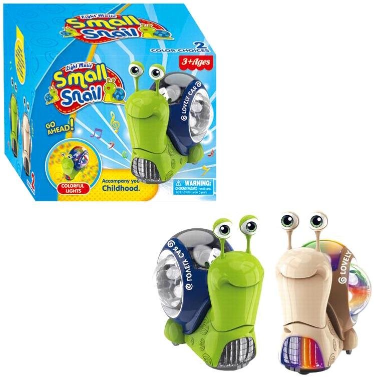 Barevný, veselý slimák na baterie. Hračka se pohybuje odrážením od překážek, hraje veselé melodie a svítí. číst celé