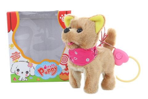 Pejsek o velikosti cca 14 x 16 x 8 cm na kabel. Pejsek chodí na ovládání na kabel a štěká. Při přepnutí do polohy ON - pejsek chodí sám. Napájení na 2 AA baterie (nejsou součástí). Rozměry balení cca 16 x 18,5 x 10. Věk 3+