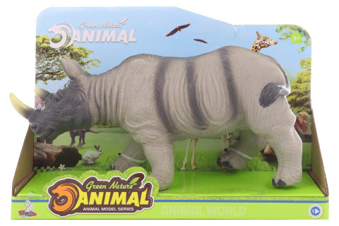 Gumový nosorožec na baterie. Nosorožec vydává zvuky. Napájeí na 3 AG10 baterie (jsou součástí). Rozměry nosorožce cca 27 x 13 x 7,5 cm. Rozměry balení cca 28 x 19 x 11. Věk 3+
