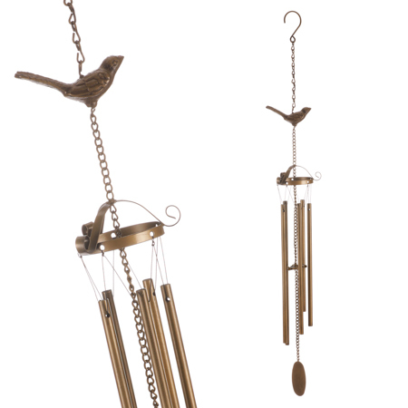 Zvonkohra vytváří při pohybu větru jemnou melodii a tím napomáhá obohatit okolní prostředí o příjemný zvukový efekt. Konstrukce je tvořena jemnými kovovými trubičkami zavěšenými na provázku. Díky tomu při závanu větru do sebe naráží a vytváří tím onen líbivý zvuk. Konkrétně tato je navíc ozdobena siluetou ptáčka a je v krásné měděné barvě. V některých případech může zvonkohra plnit i užitečnou funkci tím, že odežene nezvané návštěvníky v podobě ptáků či jiných živočichů, kteří by si jinak třeba pochutnali na naší úrodě. Zvonkohru můžeme díky háčku na řetízku zavěsit na hřebíček v pergole, altánku, nebo za jakoukoli vhodnou větev poblíž.