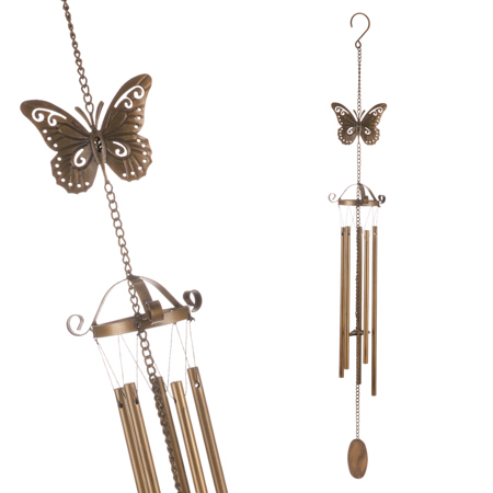 Zvonkohra vytváří při pohybu větru jemnou melodii a tím napomáhá obohatit okolní prostředí o příjemný zvukový efekt. Konstrukce je tvořena jemnými kovovými trubičkami zavěšenými na provázku. Díky tomu při závanu větru do sebe naráží a vytváří tím onen líbivý zvuk. Konkrétně tato je navíc ozdobena siluetou motýla a je v krásné měděné barvě. V některých případech může zvonkohra plnit i užitečnou funkci tím, že odežene nezvané návštěvníky v podobě ptáků či jiných živočichů, kteří by si jinak třeba pochutnali na naší úrodě. Zvonkohru můžeme díky háčku na řetízku zavěsit na hřebíček v pergole, altánku, nebo za jakoukoli vhodnou větev poblíž.