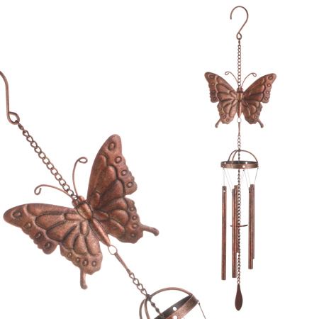 Zvonkohra vytváří při pohybu větru jemnou melodii a tím napomáhá obohatit okolní prostředí o příjemný zvukový efekt. Konstrukce je tvořena jemnými kovovými trubičkami zavěšenými na provázku. Díky tomu při závanu větru do sebe naráží a vytváří tím onen líbivý zvuk. Konkrétně tato je navíc ozdobena siluetou motýla a je v krásné měděné barvě. V některých případech může zvonkohra plnit i užitečnou funkci tím, že odežene nezvané návštěvníky v podobě ptáků či jiných živočichů, kteří by si jinak třeba pochutnali na naší úrodě. Zvonkohru můžeme díky háčku na řetízku zavěsit na hřebíček v pergole, altánku, nebo za jakoukoli vhodnou větev poblíž.
