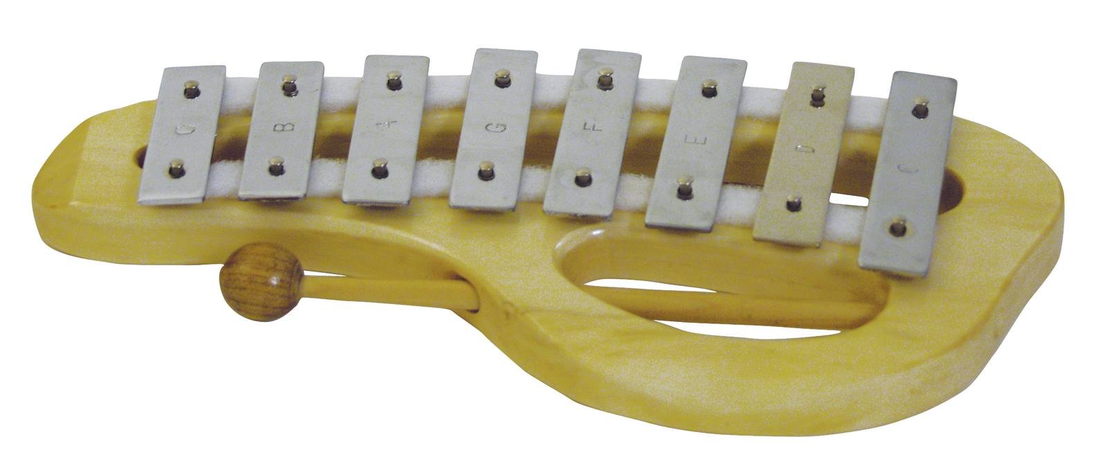 Metalofon oválný s osmi kameny a dřevěnou paličkou, ladění v rozsahu jedné oktávy C - C1, rám borovice. Pro děti od 3 let.Materiál: ocel (kameny), borovice (rám)Počet kamenů: 8Rozsah: C - C1Hmotnost: 0,4 kg