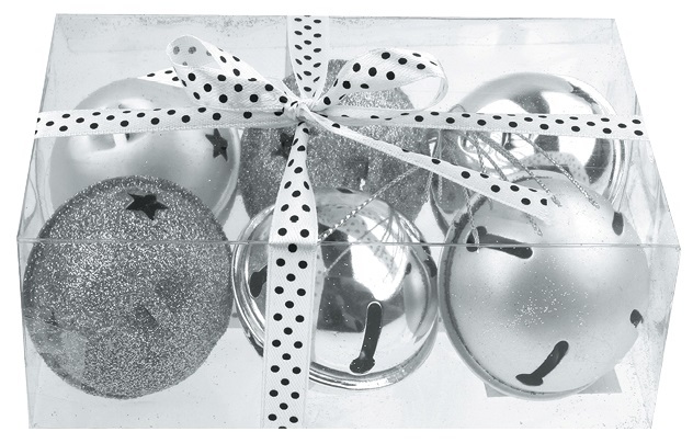 Rolničky stříbrné 5 cm, 6 ks v krabičce