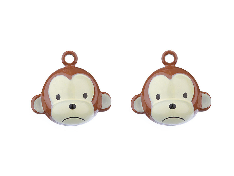 Rolničky srdce, tygr, medvěd, žába, opice - 10 ks - 5 hnědá světlá opice