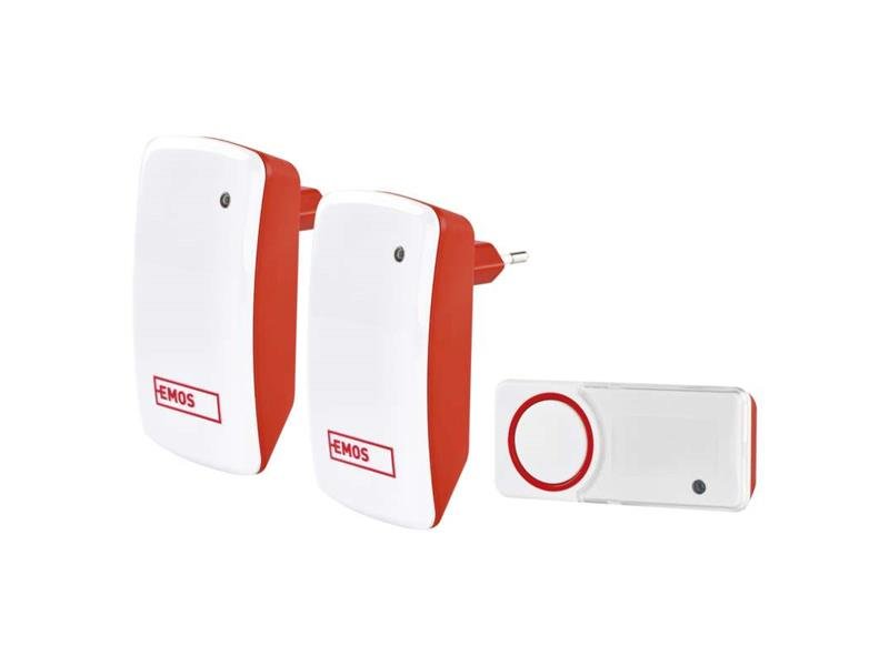 barva: červená|dosah tlačítka: 150 m|maximální hlasitost zvonění: 110 dB|možnost přidat další tlačítko: ano, max. 8|napájení hlavní jednotky: 230 V AC|napájení tlačítka: bez napájení|optická signalizace na tlačítku: ano|optická signalizace na zvonku: ano|počet melodií: 10|počet přijímačů v balení: 2 ks|počet tlačítek v balení: 1 ks|přenosová frekvence: 433 MHz|přídavné (náhradní) tlačítko: P5750T|prodejní obal: 1 ks, blistr|regulace hlasitosti: ano, 5 úrovní|speciální funkce: bezbateriové tlačítko|voděodolné tlačítko: ano|způsob párování: automatické párování - self-learning|způsob přenosu: bezdrátový zvonek