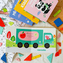 - Zvukové leporelo s pěti různými zvuky vozidel a melodiemi.